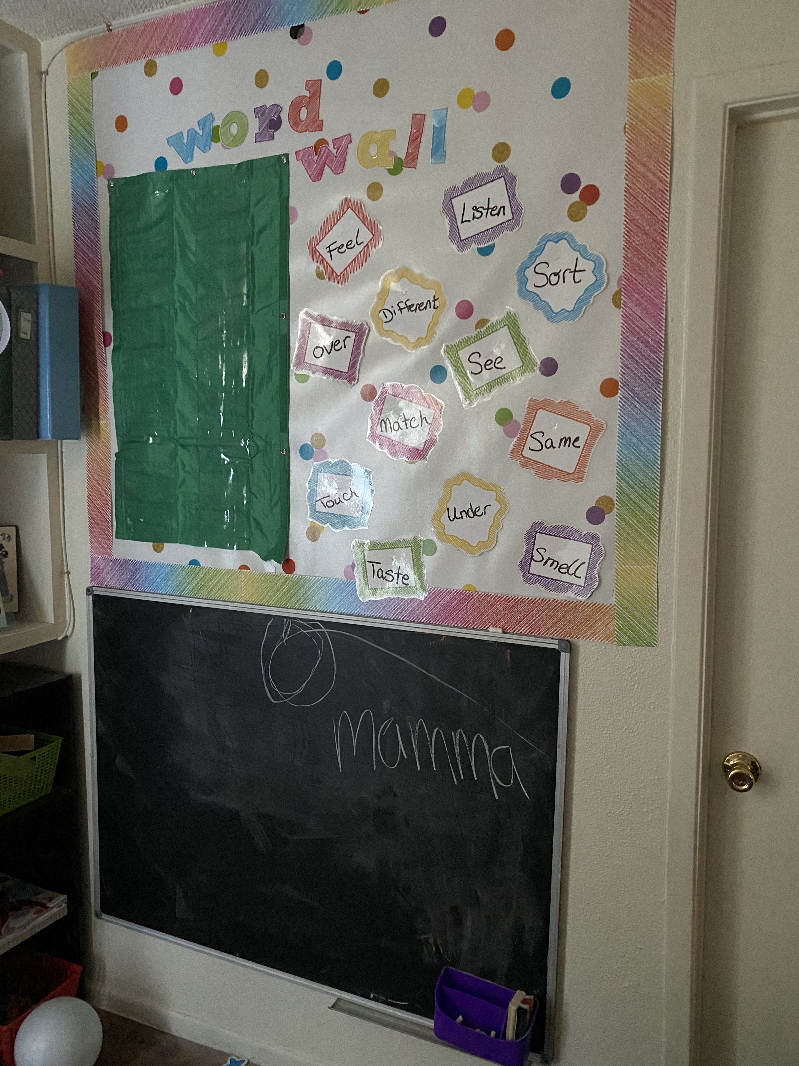 The picture to the left is the seasonal tree. This will change from the circle time wall to the learning wall with the chalk board. However I’m changing the chalk board to the opposite wall from where it was before and putting the circle time wall on the other wall.