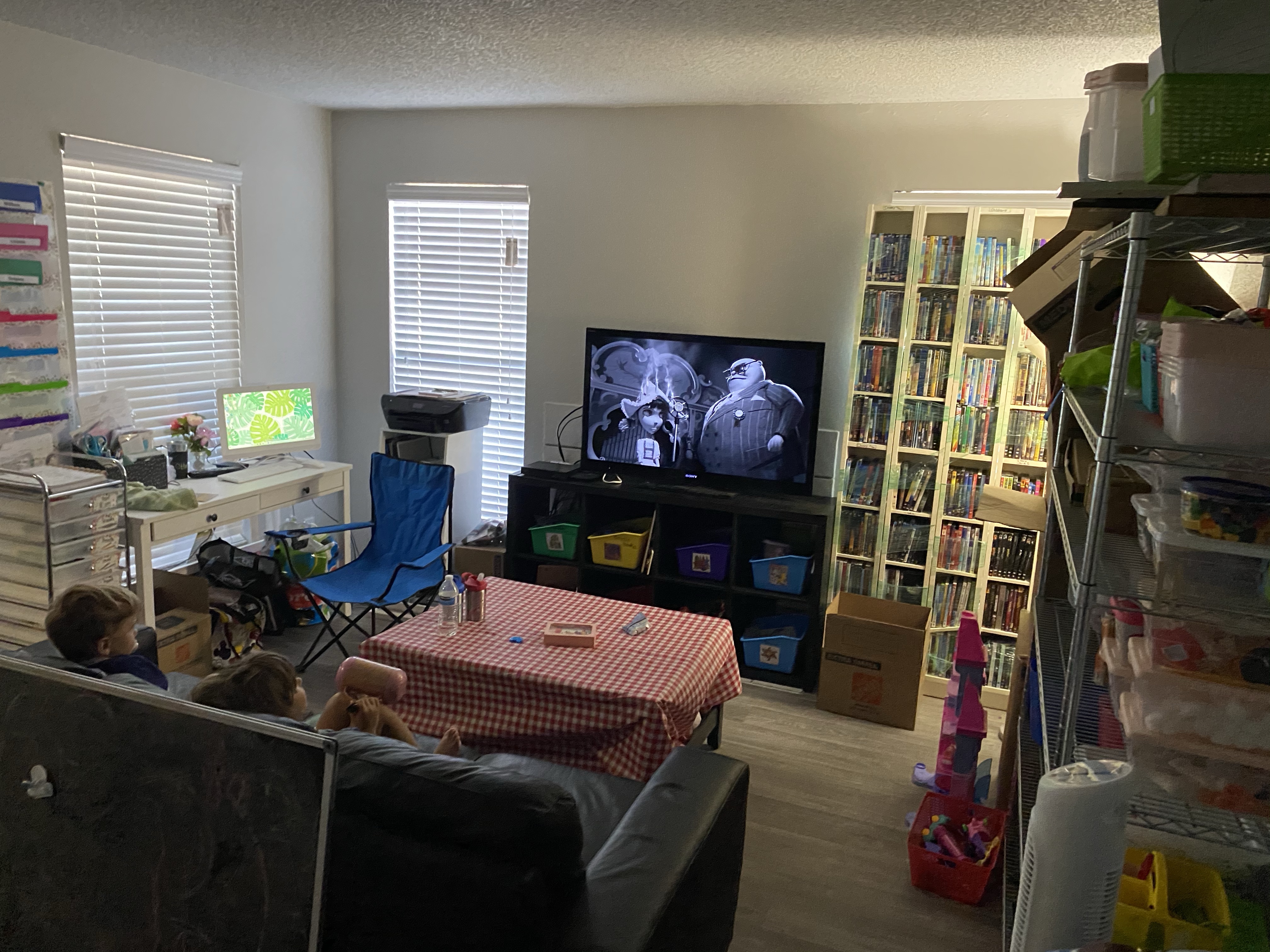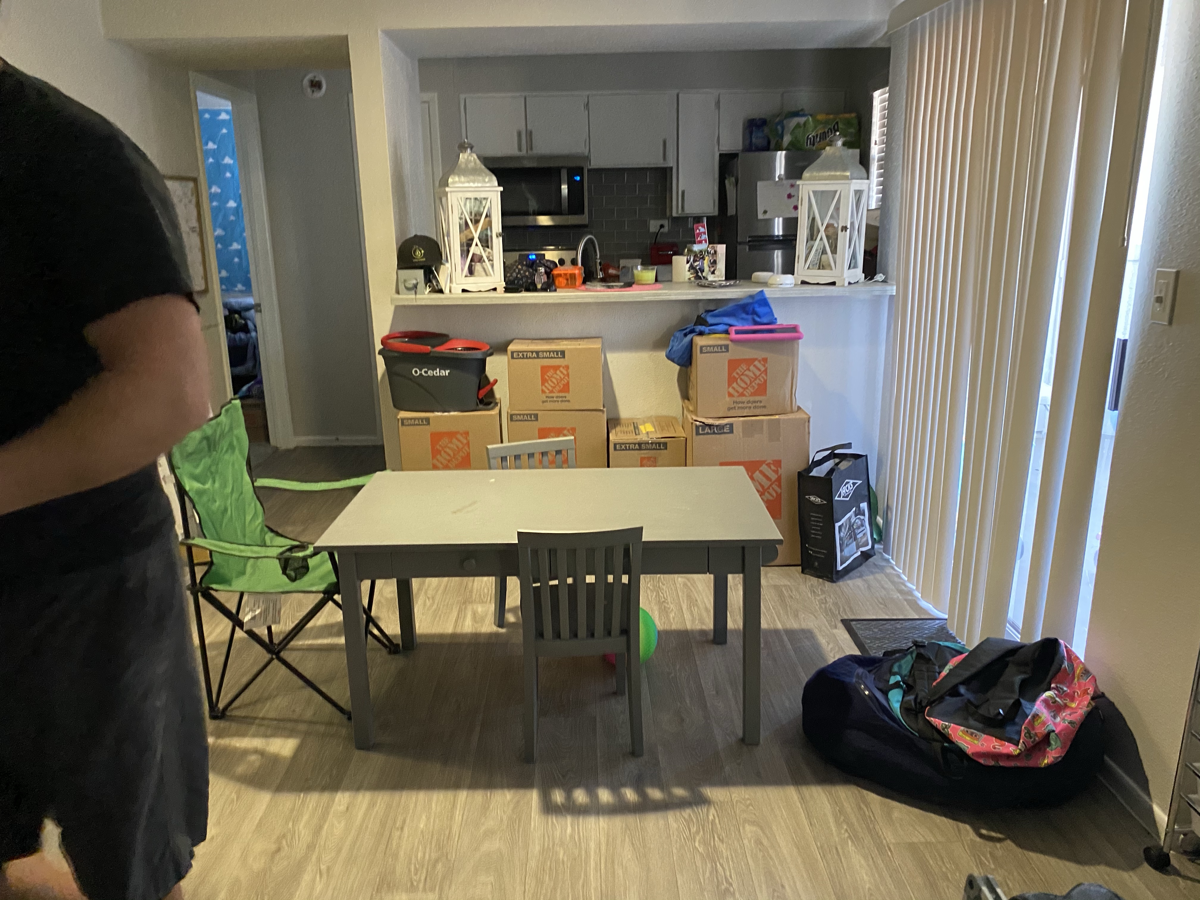 The biggest effect that the space has on the kids lessons, is their pretend play center. I have no space for their play kitchen ( which first half is water damaged and in the dump and the second half on the patio) or to put up anything for them to play in. So my pretend play area ( which makes the whole theme of the week protrude out) is non existent in this apt.