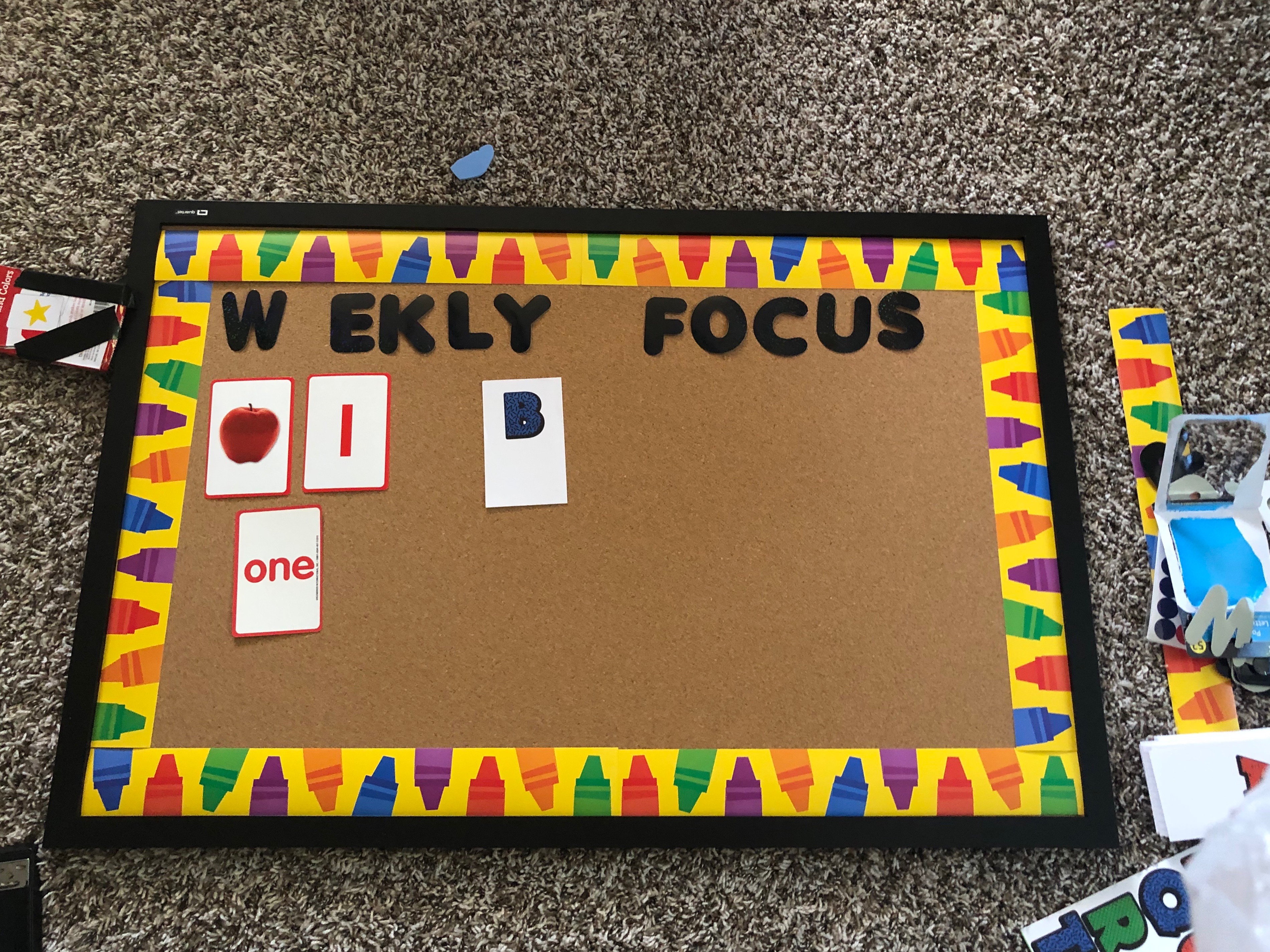 She found this weekly focus board on Pinterest and I was so happy she chose this rout of learning. It’s Easy, simple , and you can get it all done with stuff from the dollar store like she did.