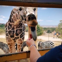 Our favorite part of the entire zoo is the safari ride where they take you out into their wild area to show off animals while you’re in a giant safari truck. And along the way you stop by the giraffes and you get to feed them from the vehicle.