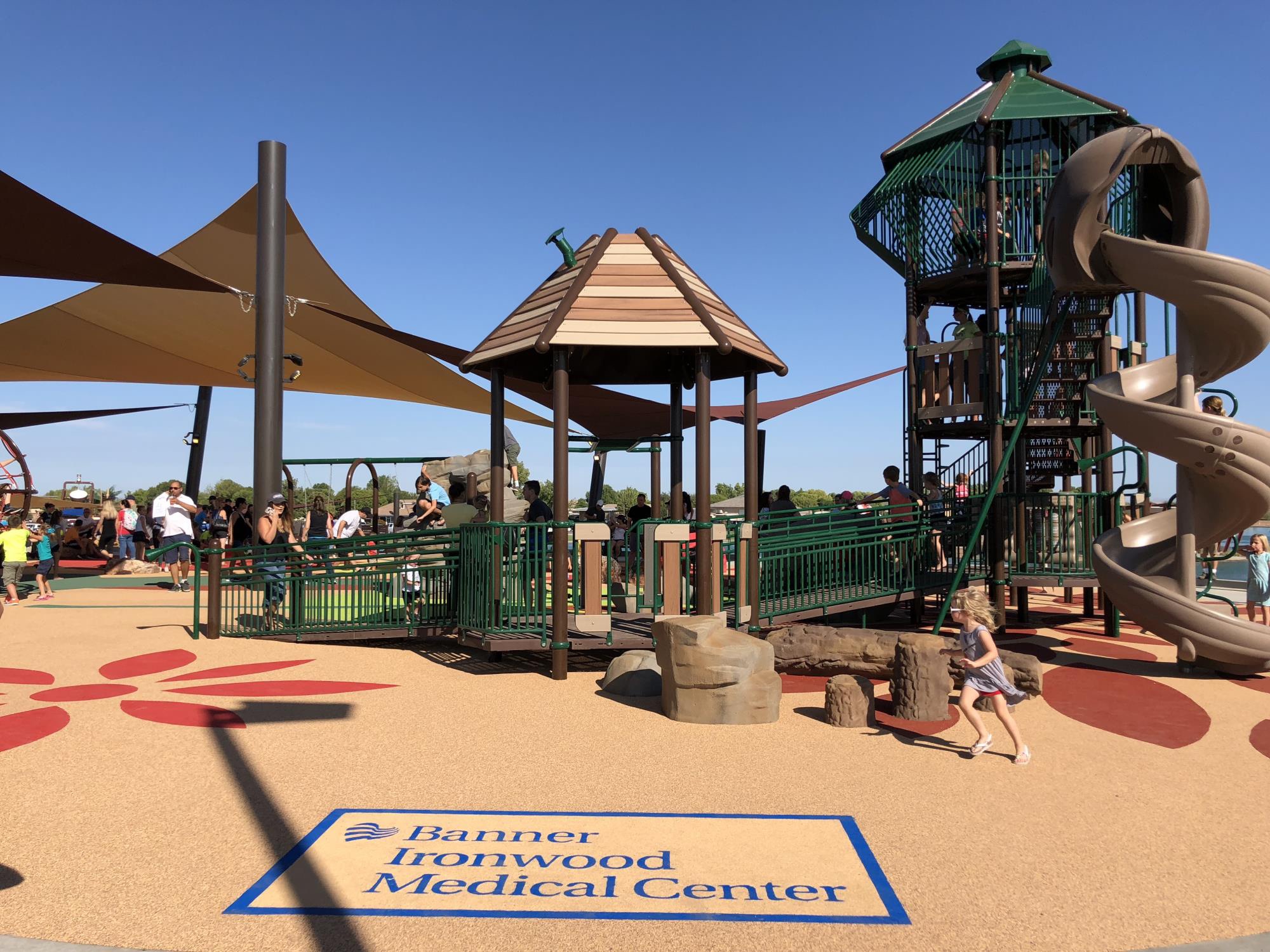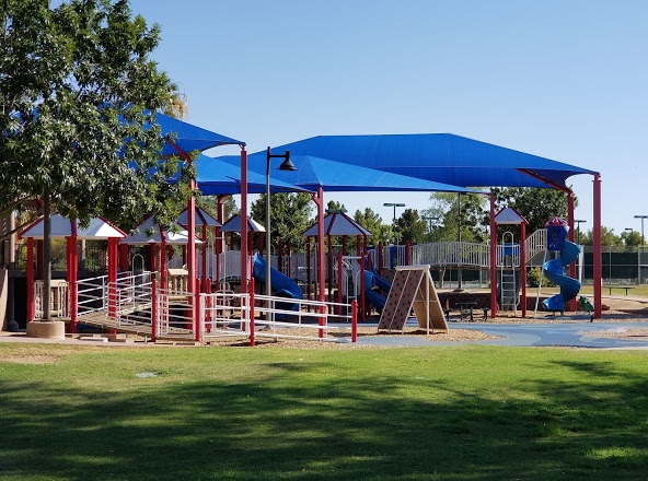 Desert Breeze has been around since the early 2000’s. I should know, I went to school at the middle school across from it. Sitting in the middle of a neighborhood in chandler , DB brings multiple things to one property. However they are giant. It has one playground , small splash pad ( that they recently redid ) and a train park with small rides.