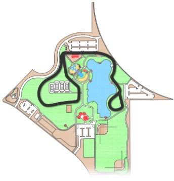 It has a splash pad and a few play grounds. No train park, it it does babe this very popular climbing pyramid. It’s so tall, it even gives me a heights. the splash pad is a giant circle and very open. It is very popular , but the regular park is so close, my kids couldn’t make up their minds to pick the splash pad or the park. So it’s chaotic.