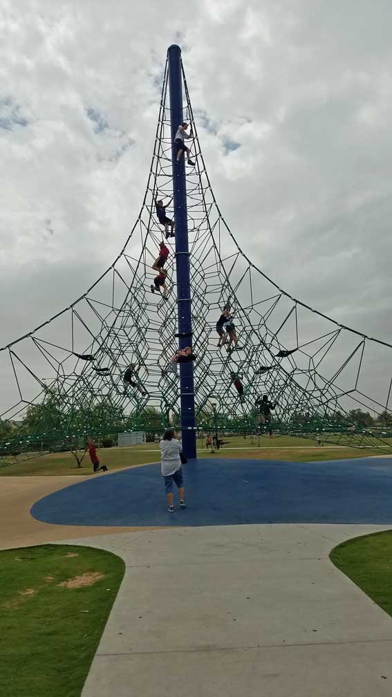 Last winter and spring the kids and I discovered the brand new park in Gilbert. The kids loved how big the park was. The little park at the bottom of the hill is mainly for toddlers and babies. The rest of the hill is divided up into three major sections the kids can climb up and go down different types of ways. Slides, climbing posts, rope climbing, and even a huge tower at the top make up this amazing park. Two zip lines and a bunch of swigs , I can’t wait to go back. We never got a chance to use the splash pad, but they were remodeling it when we were there, getting it ready for summer. It will have to wait till next summer.