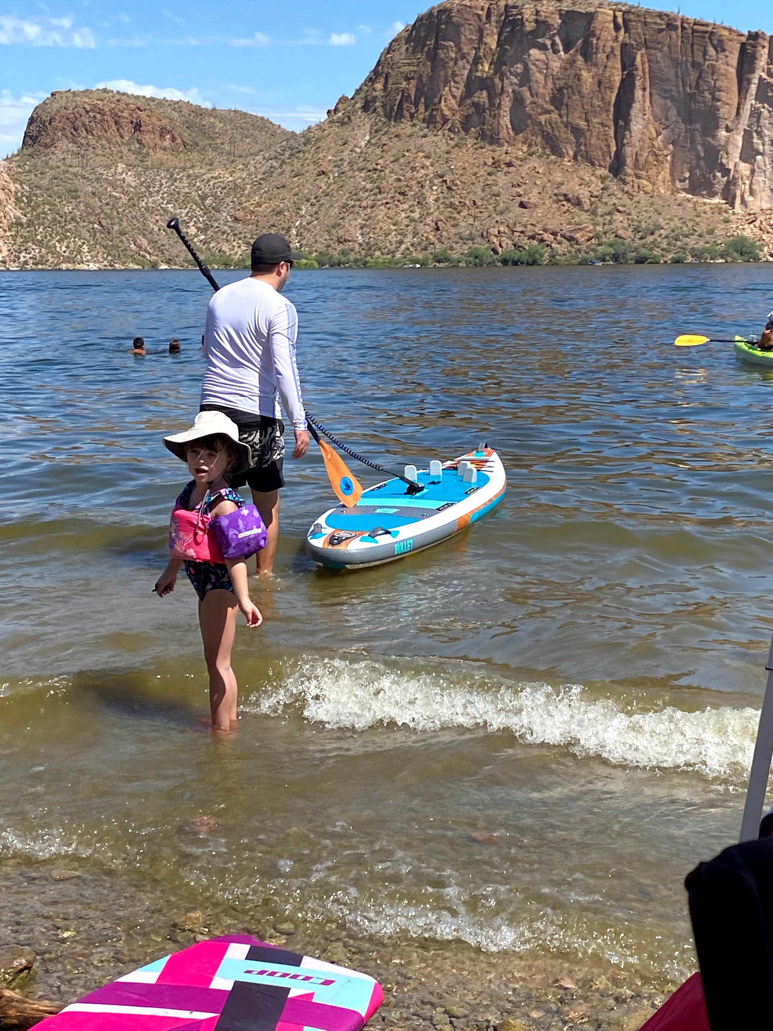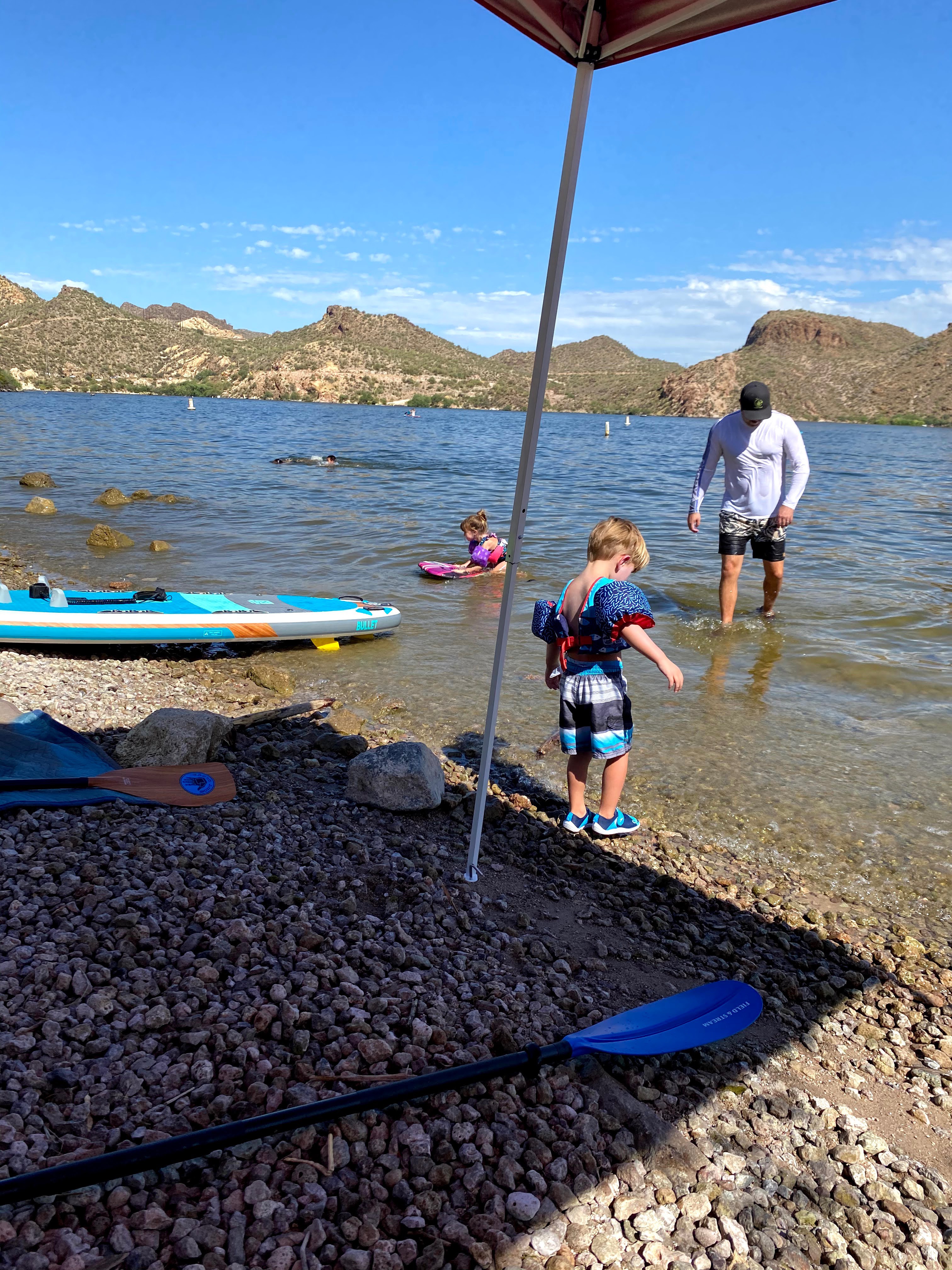 This past summer during covid, my amazing in laws brought more into our lives, by taking us to our family favorite place to go right now in the summer. Soon we will get our own kayaks and paddle boards to do it on our own someday. For now, I love doing it with them and the kids. It’s like a beach in AZ. Canyon Lake.
