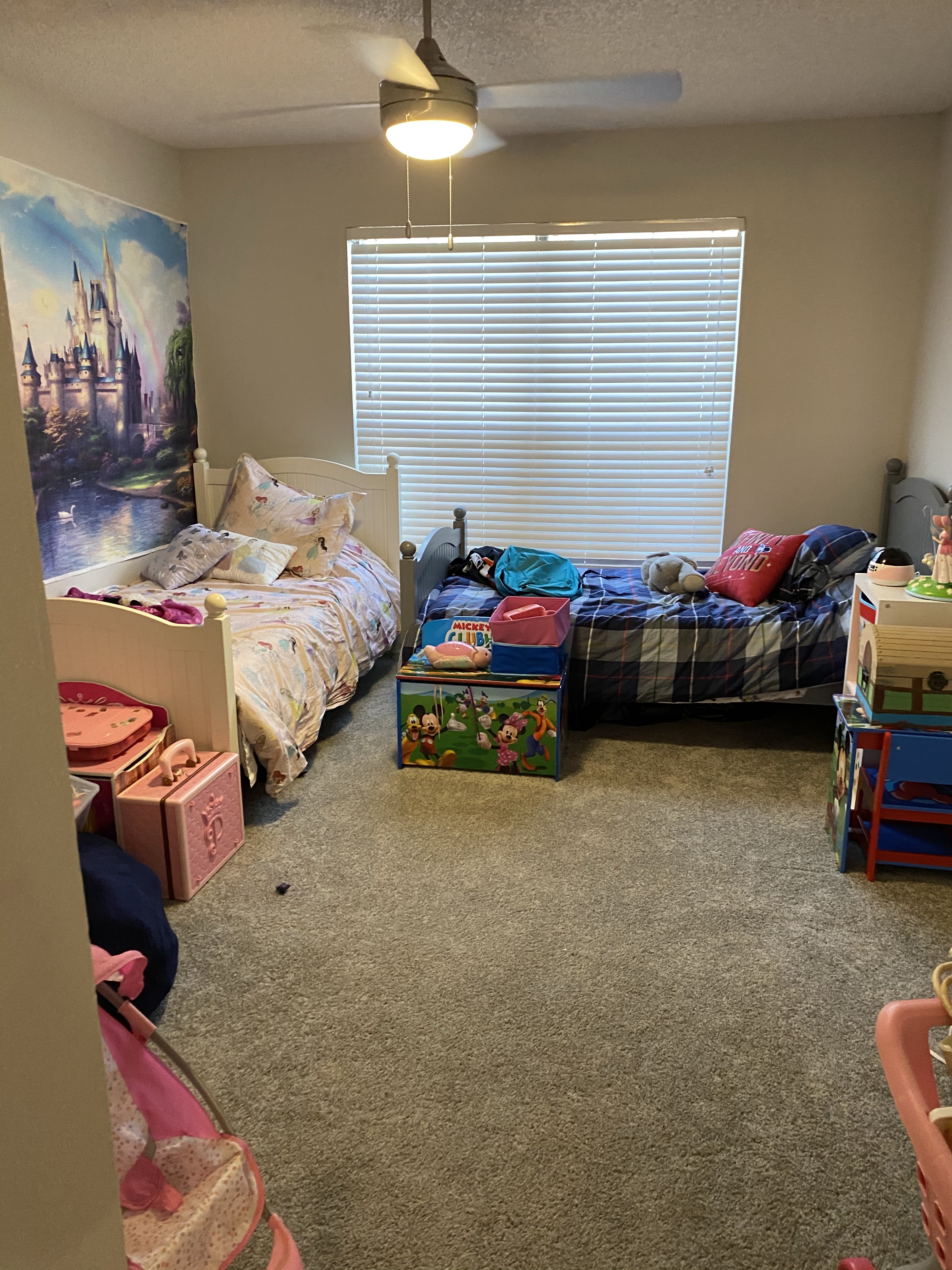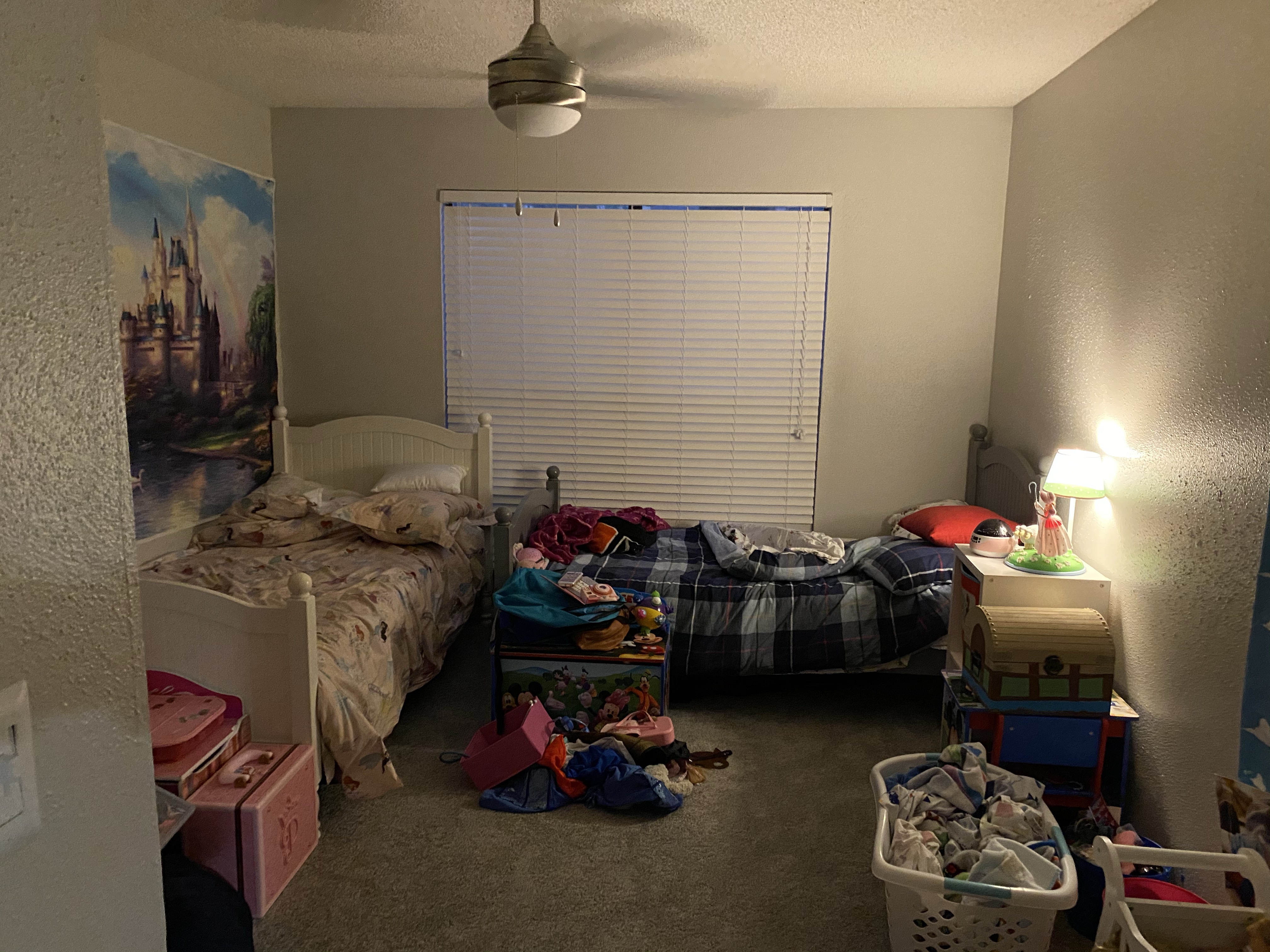 The only thing is we don’t have a dinning room or a master bed. YET. We use the kids school table to eat in just like we did at the temp apt. And we have our mattress in the floor. Crazy I know, but it’s good for now.