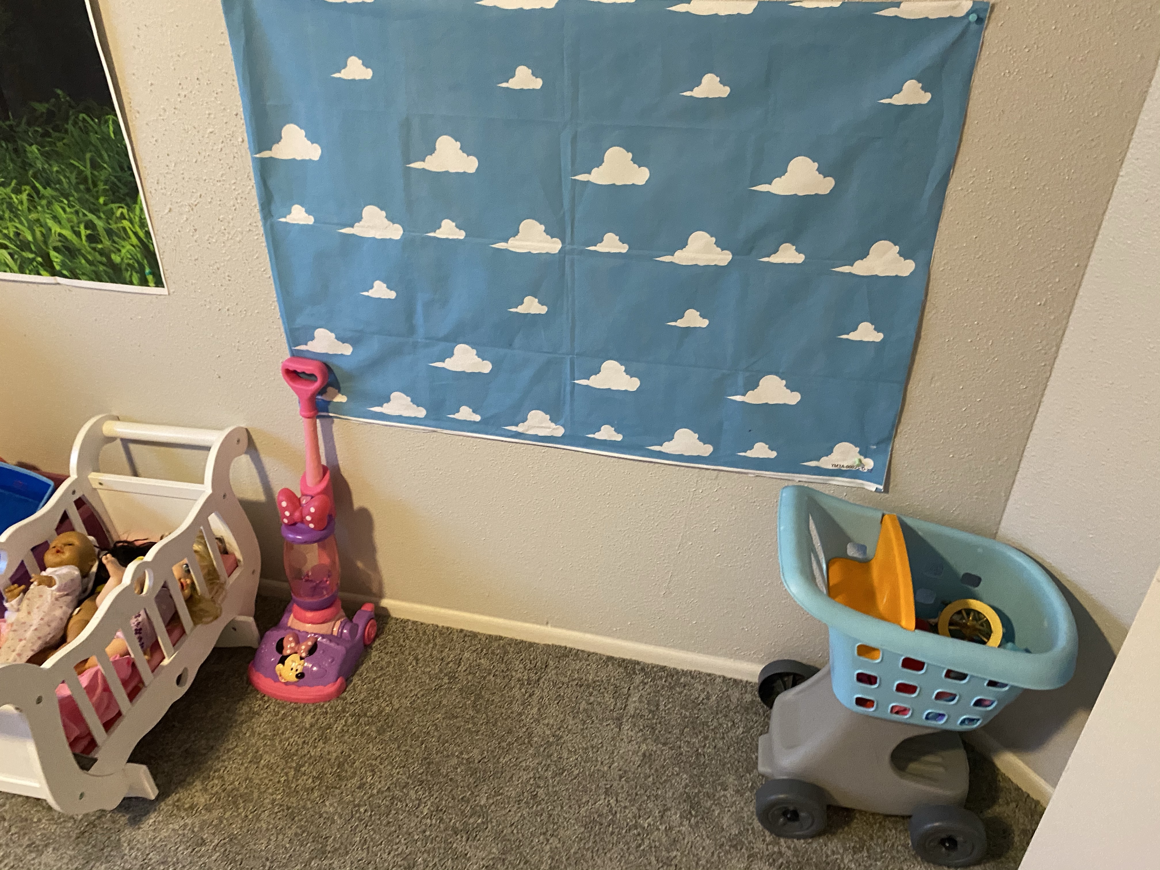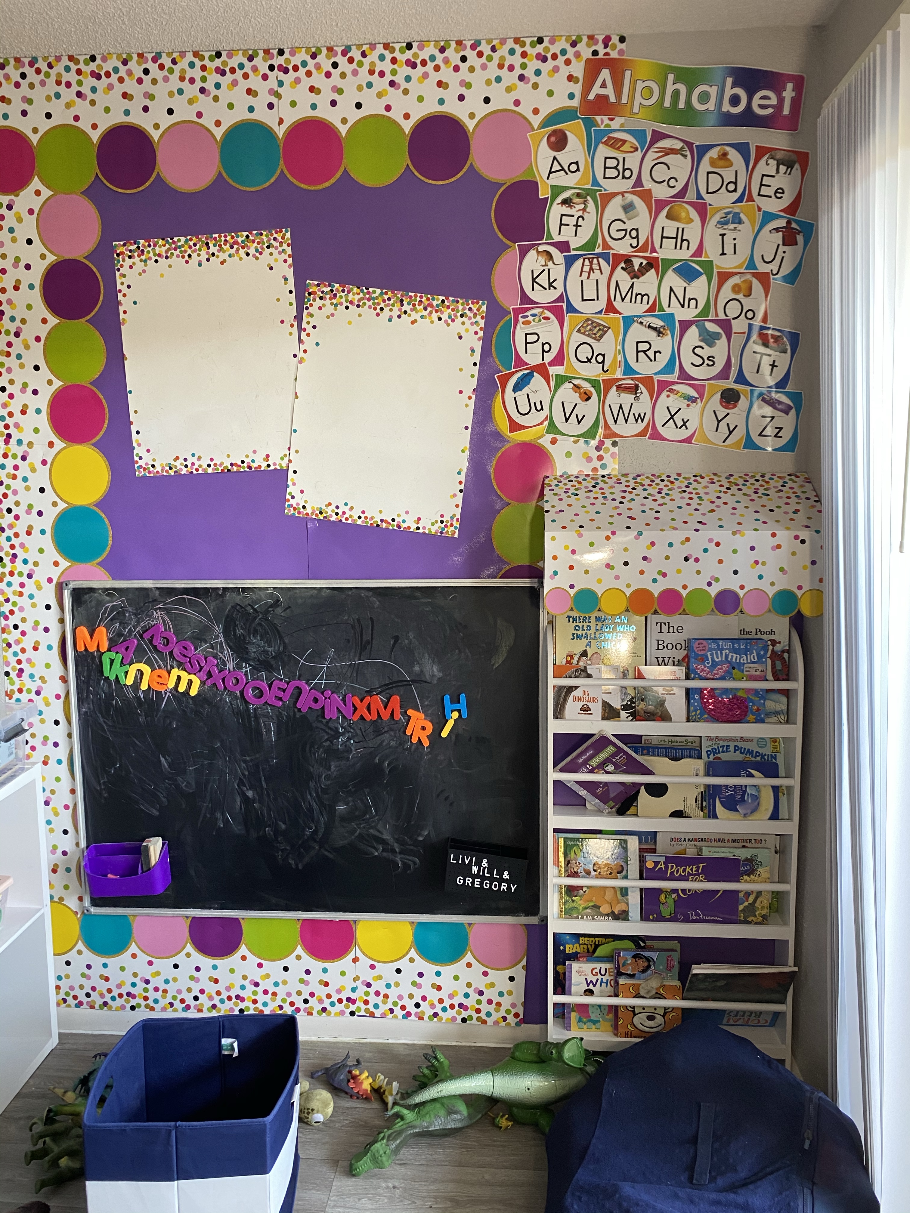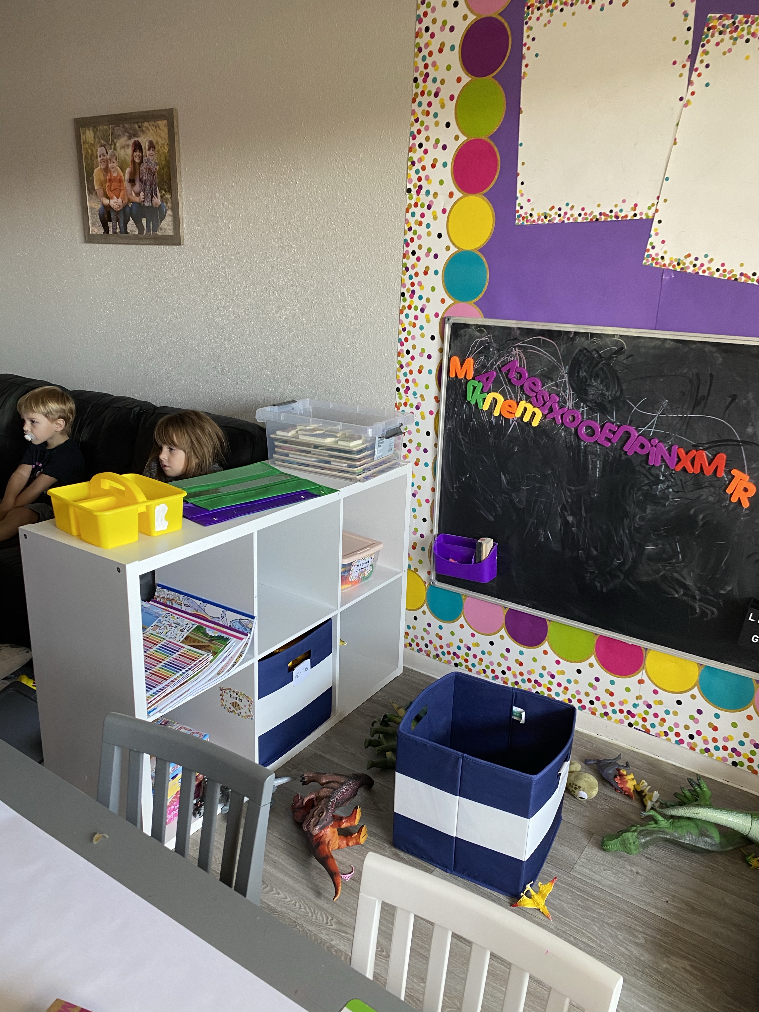 So each day this week I made it my mission to get one room completed. So on Wednesday I got the kids room completed, Thursday I completed the storage area and laundry space, Thursday was part of the classroom, and Friday I completed half of our room.