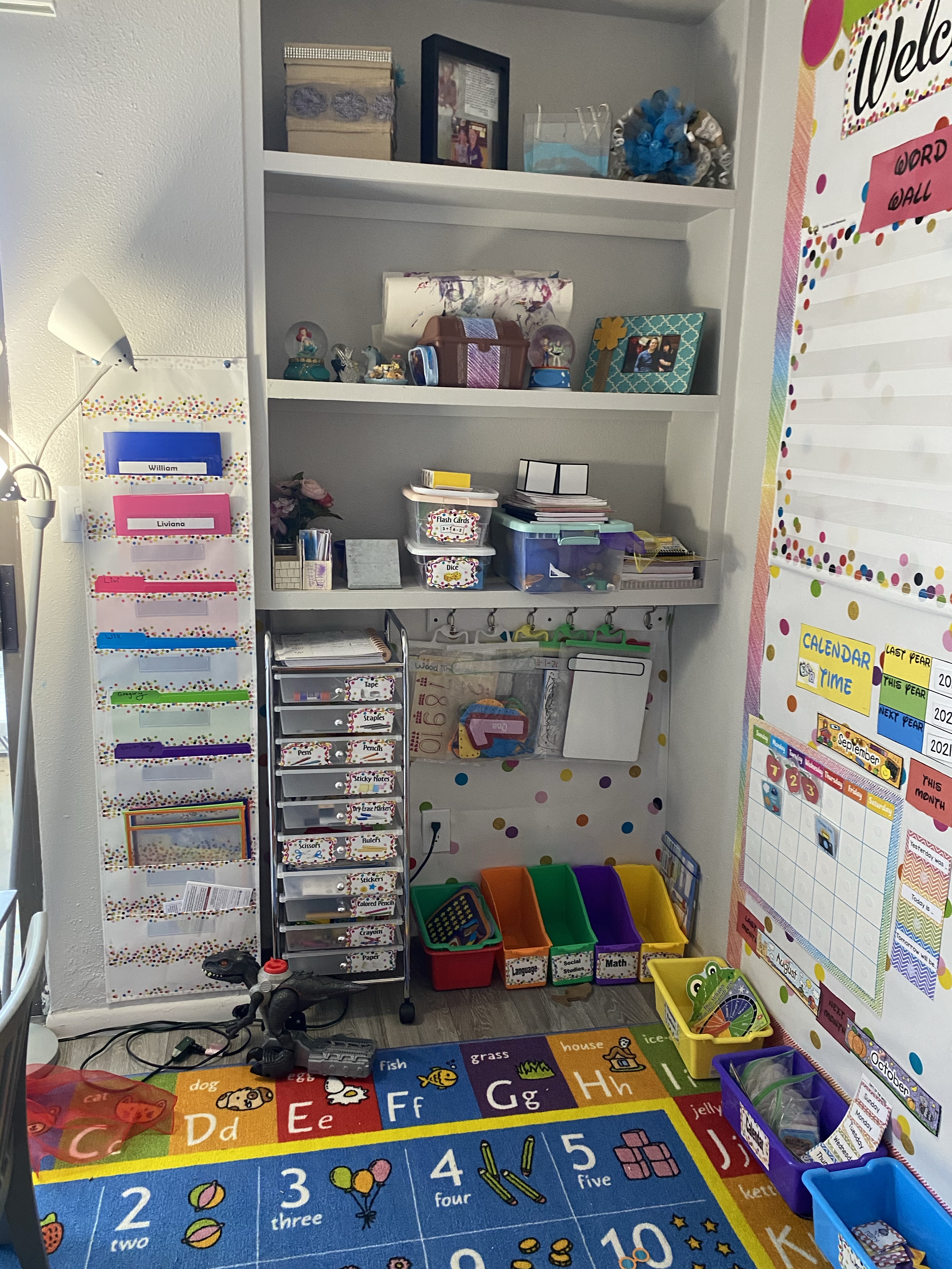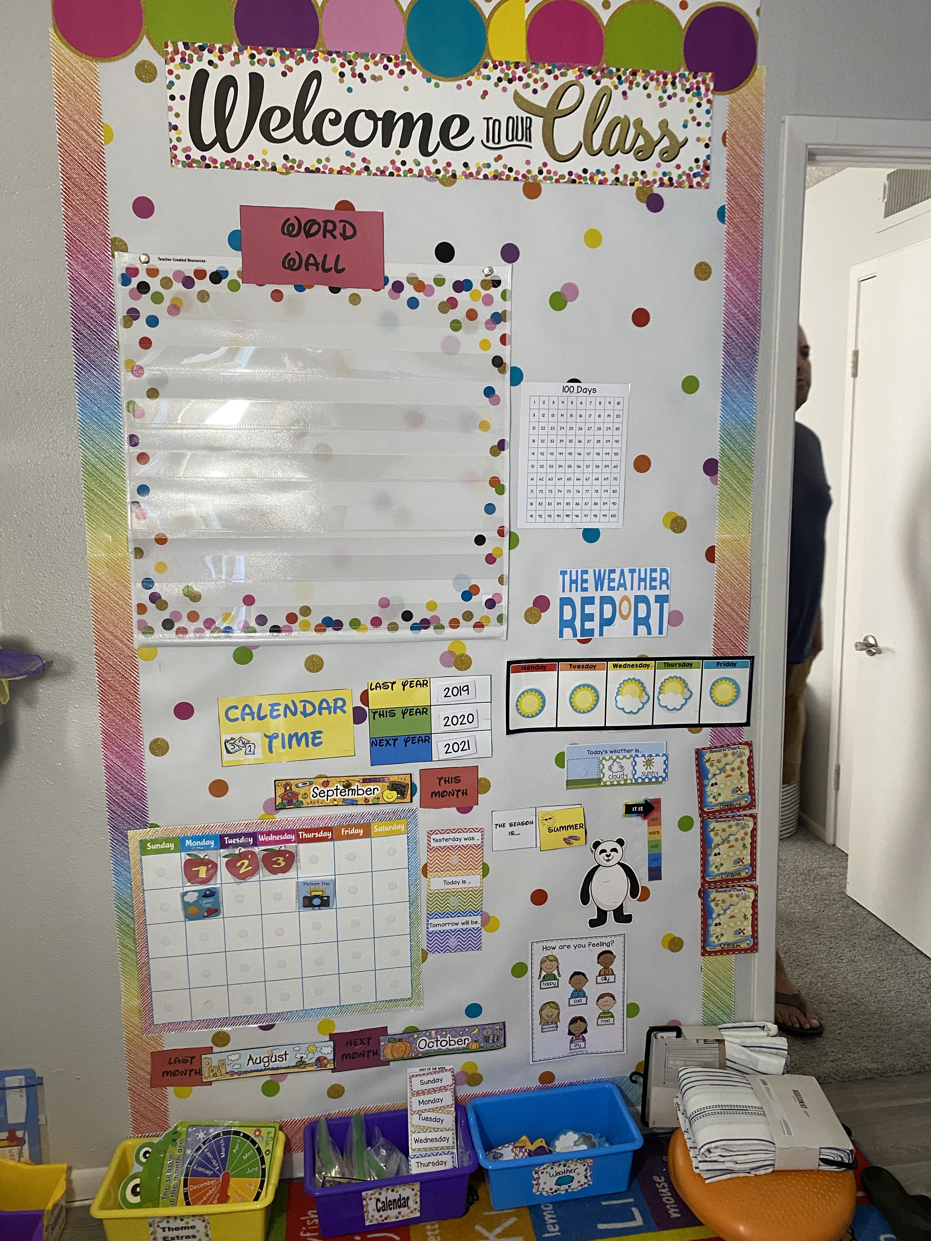 The word wall itself will be the only place I put their vocab words. Mainly because their isn’t any more room. So I will use the fancy pocket for that, and use the green pocket for something else. I was thinking of using it as a center choice chart down the line. To teach the kids that you need to pick a center with your name, and if you change centers, you have to clean up your area before you go onto the next place.