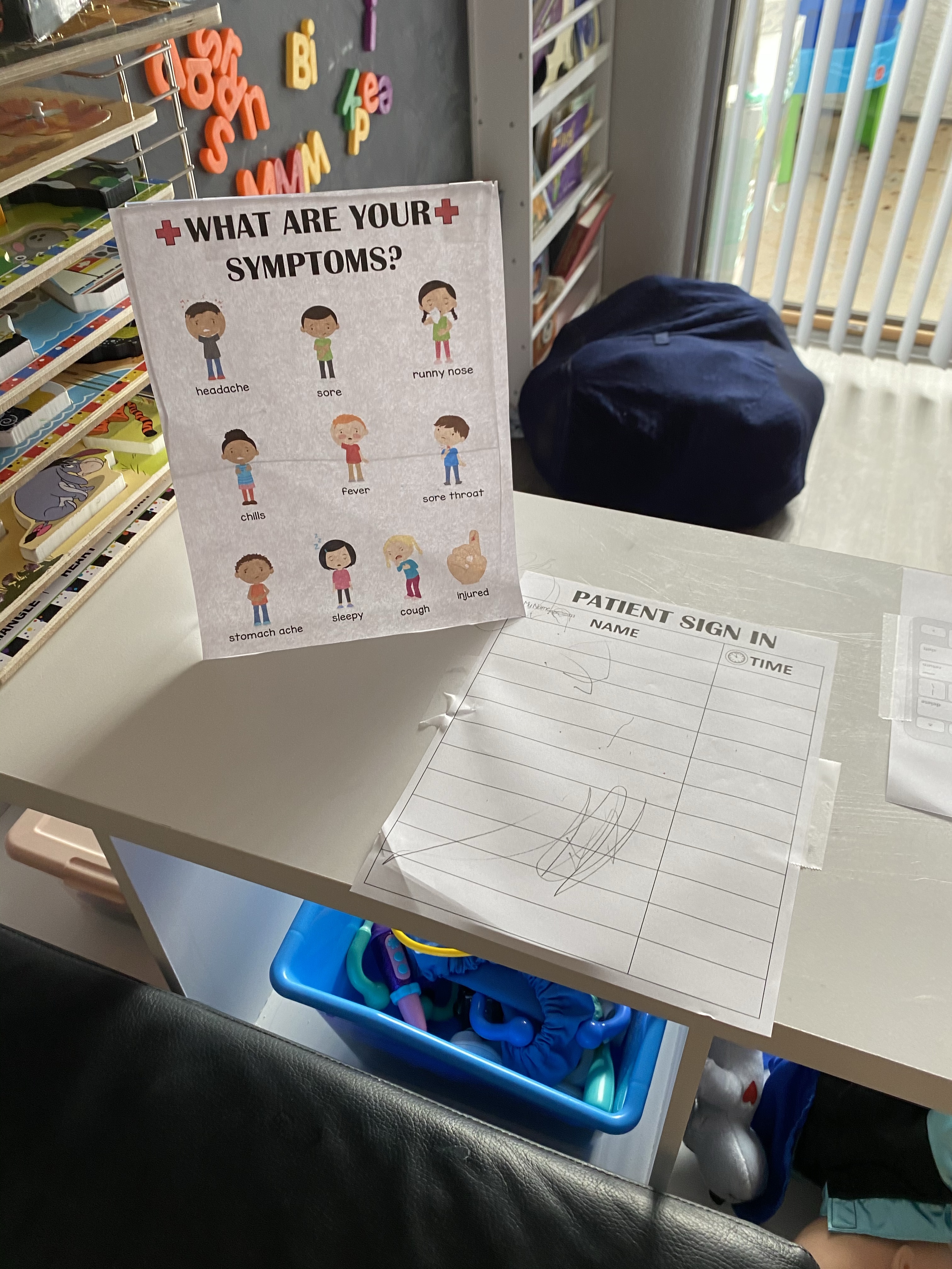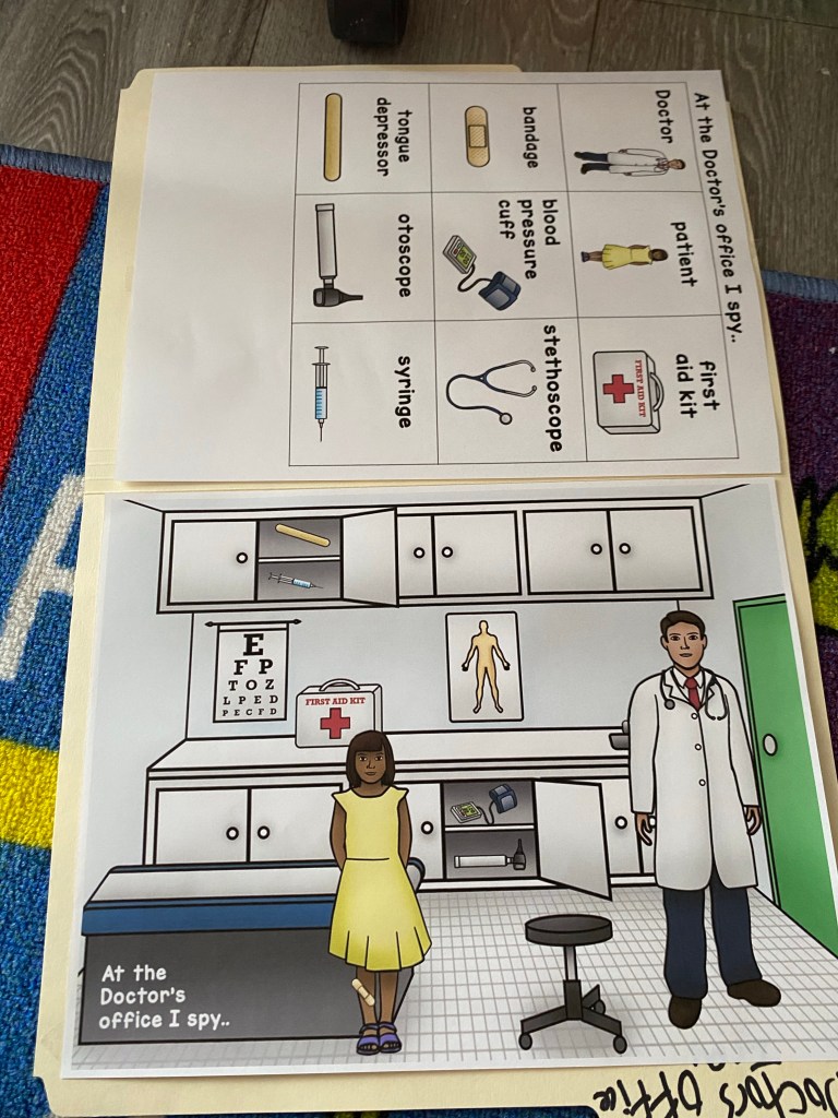 Healthy me was supposed to be last weeks lesson plan, and yet, a lot of things happened this past week that kept me from doing it every day. My daughter had a doctor apt of her very own, it was a holiday on Monday so my third student didn’t come due to us wanting a day vacation. But Doctor Office is one of the best themes out there, and also very important. So we are continuing it into this week.