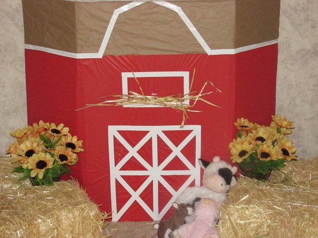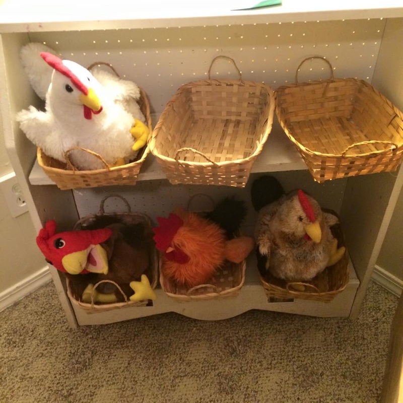 If you have stuffed animals that are farm animals that is the easiest way to go. Make a little pretend farm with cheap bails of hay. If you have baskets you can make a chicken coupe. You don’t need stuffed animal chickens, you can make them. If you remember that little art project we did as kids during thanksgiving you can make Paper Mache chickens.