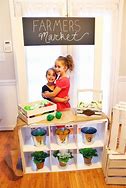 Pretend play can be a multitude of ideas. You can play farm, chicken coupe, and farmers market with fruits and veggies. So many different ideas.
