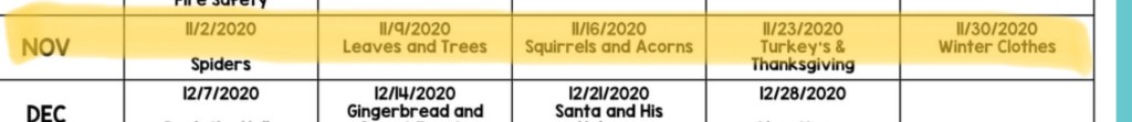 First week of November is SPIDERS. I HATE SPIDERS. Lol . So I will definitely change that. She has insects for the spring, so I will add spiders to that. So for this week I am might change it. Not sure what to yet. I might put together a couple of ideas and ask the kids which one they want to do.