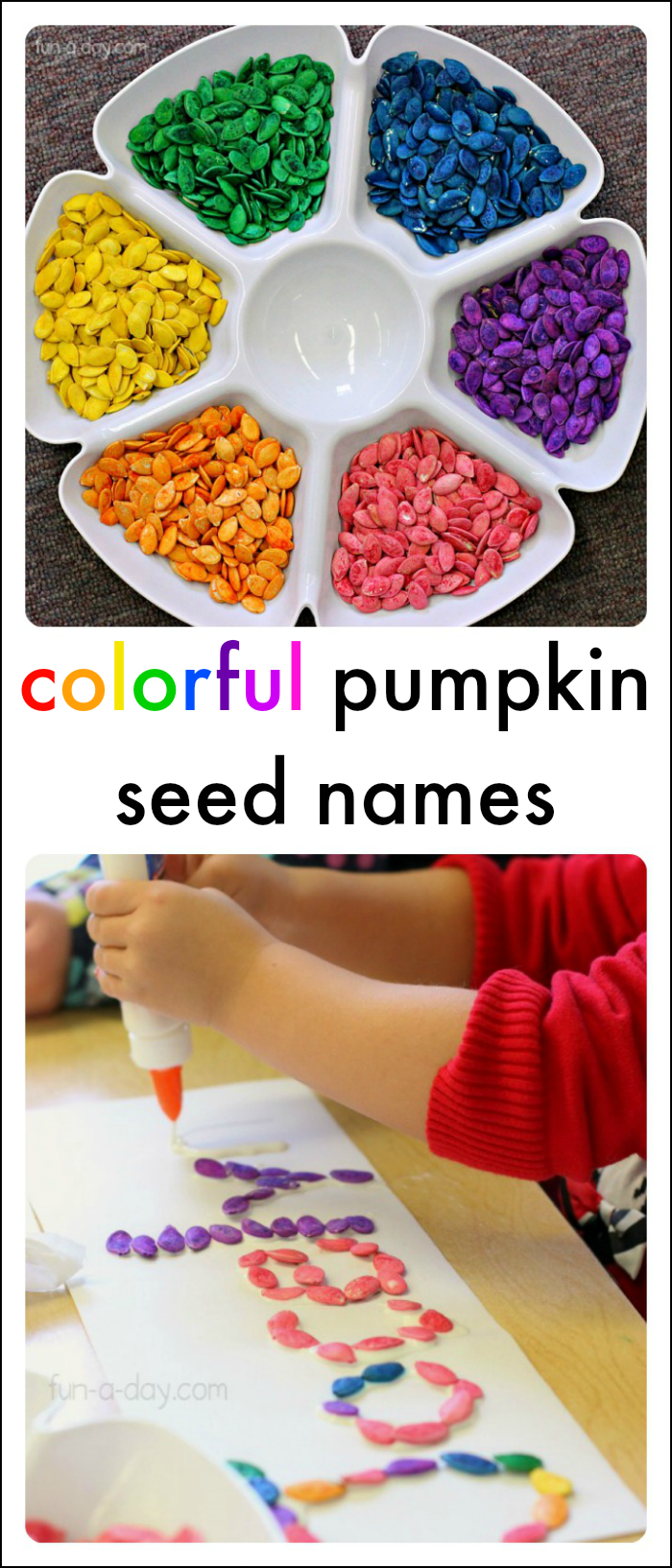 We are going to do a couple of these but we are also going to use what’s left of our pumpkin seeds to spell our our names.