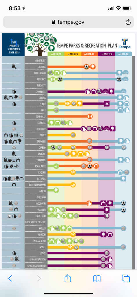 For more information you can go to the city of Tempe’s website and see the plans for the park closest to you