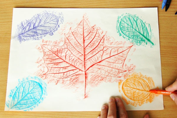 You can use some of those fake leaves, ( in case you can’t get ahold of real leaves) and make a fall wreath. Use those old wine corks or find something round to use as a stamp for your tree. Plus, my favorite, leave rubbing.