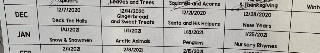 So mostly Christmas themes. Which is okay. But there are other holidays in the month, and if you want to switch out the weeks to fit your religion you can. Even if you don’t celebrate it, you can do all the holidays as a teaching idea. I once didn’t Hanukkah and Kwanzaa in the same week and plaid the games and did the crafts with them to show them there are other holidays other than Christmas. A lot of my kids didn’t know about that.