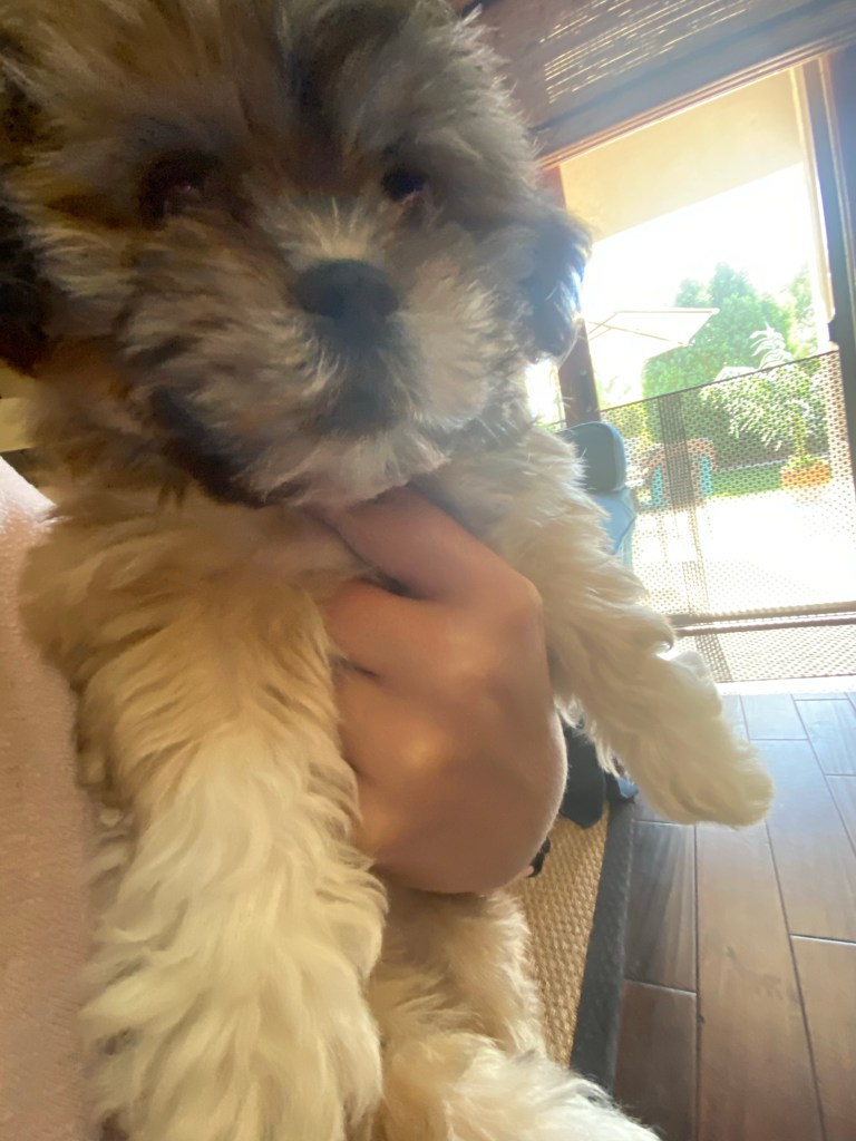 It’s come to everyone’s attention, that it’s more difficult raising a puppy , when the owners are in their 70’s, and the semi owners ( me, my husband, and the kids) can’t have her in their apt cuz it’s an apt and she needs a back yard .