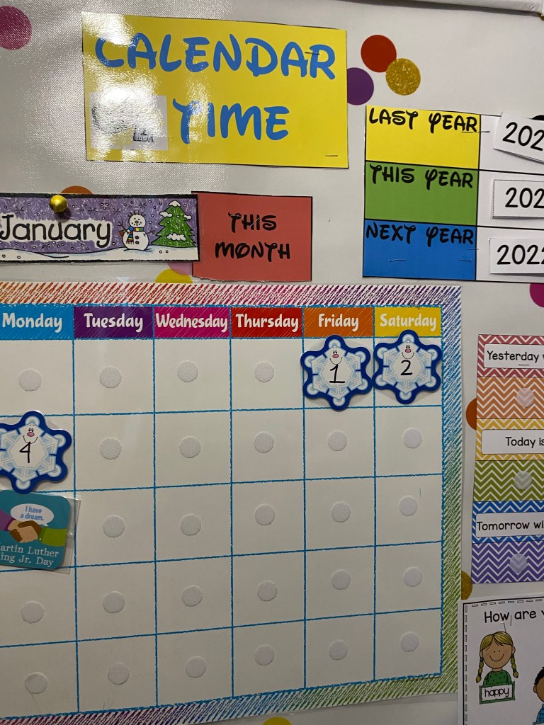 We began our day by playing and then we watched that episode and then when we went to calendar we talked about the new year.
