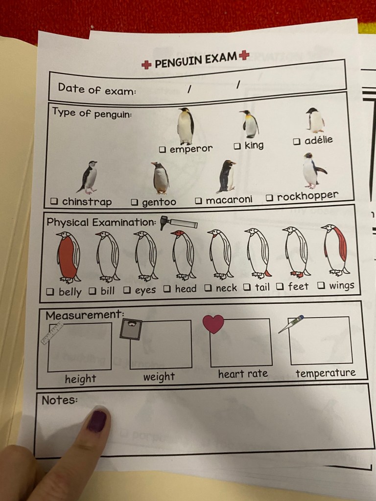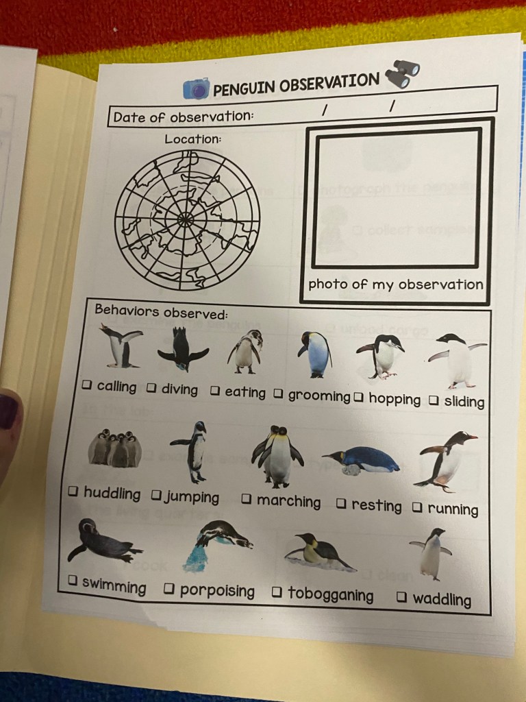 For this the print out had lots of fun stuff revolving around animals that live in there Poles. North and South Pole.