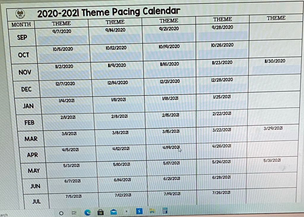 So I changed somethings around and added my own ideas. My kids 21-22 school year starts the week of July 26th, so that week it will have no theme, or anything after that.