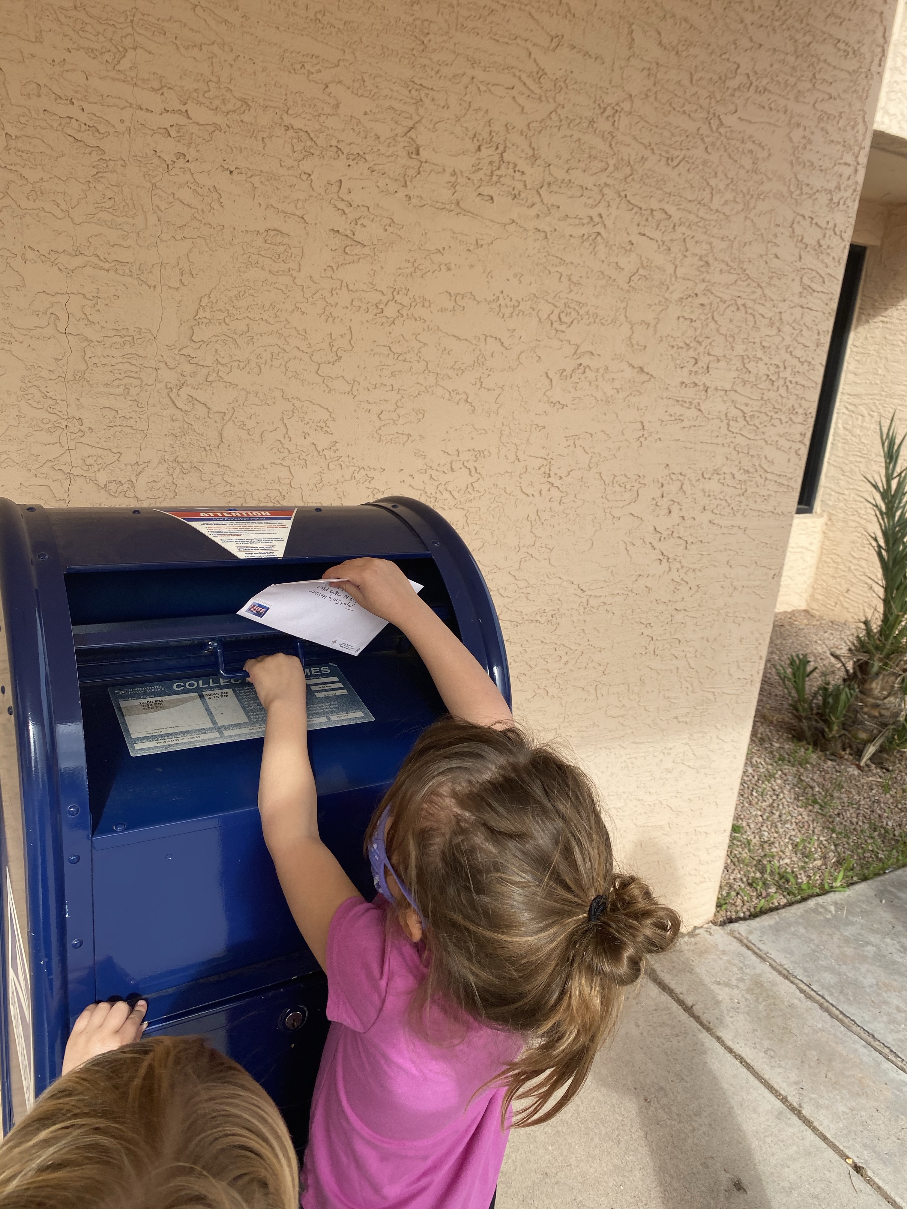 Now we stayed across the street to watch her cuz of covid and because I told the kids that we aren’t allowed to be around the mail. It’s against the law to see other people’s mail , so the only person who can see it is a post person.