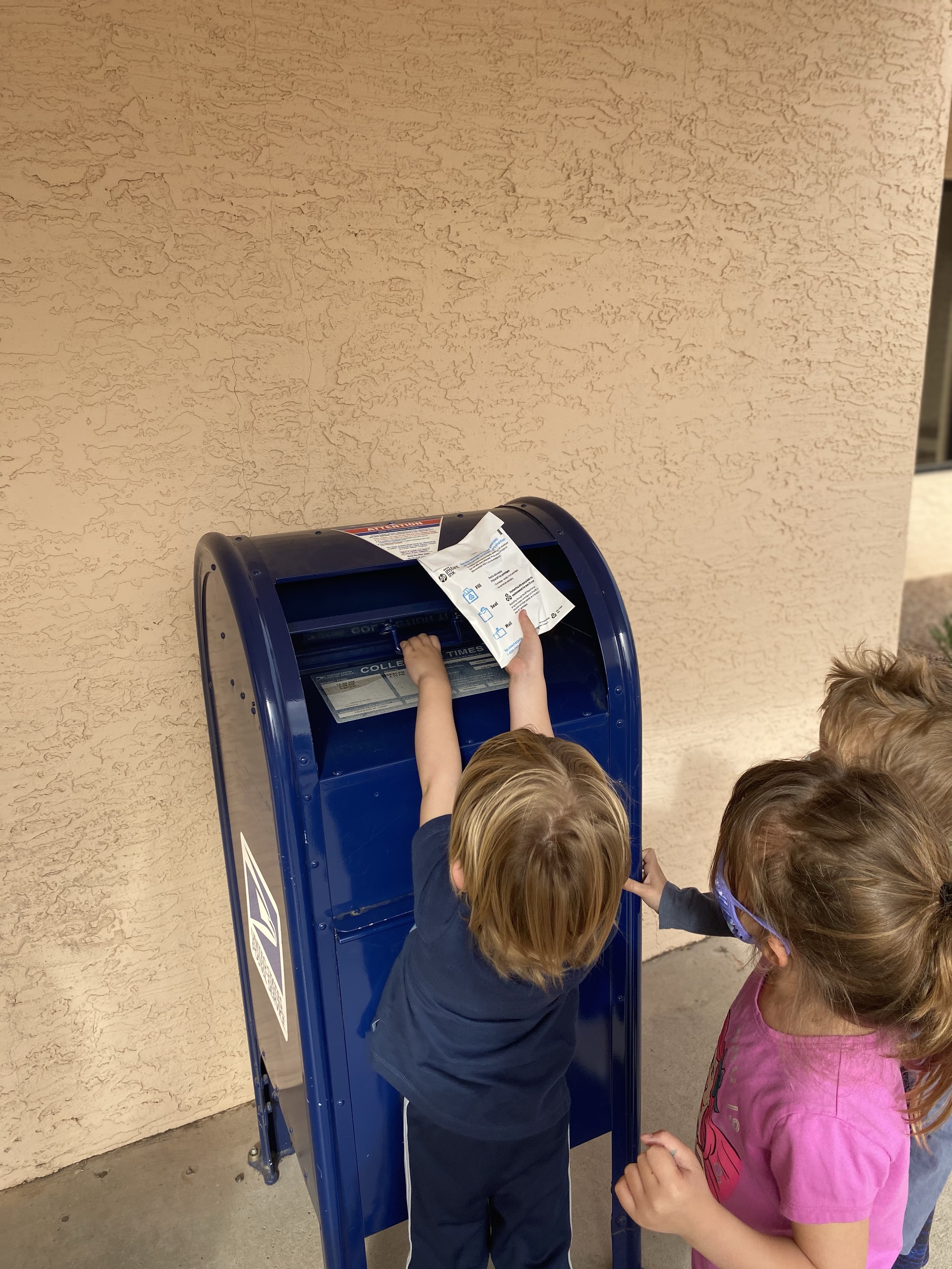 I took them back across the street to show them our normal mail box and while we showed up the mail person was there doing the mail.
