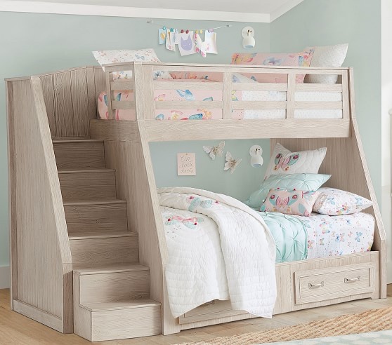 We looked everywhere for the perfect bunk bed. We even looked at the matching loft bed to our kids beds. So that way it would match their bed, and when we move, our daughter would have both a loft and a bed under.