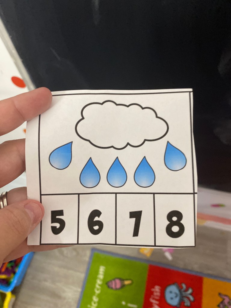 Then we ended our day with our weather pages. We did a short math with word numbers. My soon to be Kinders can read the words, but then it took them a second to show the number with the word.