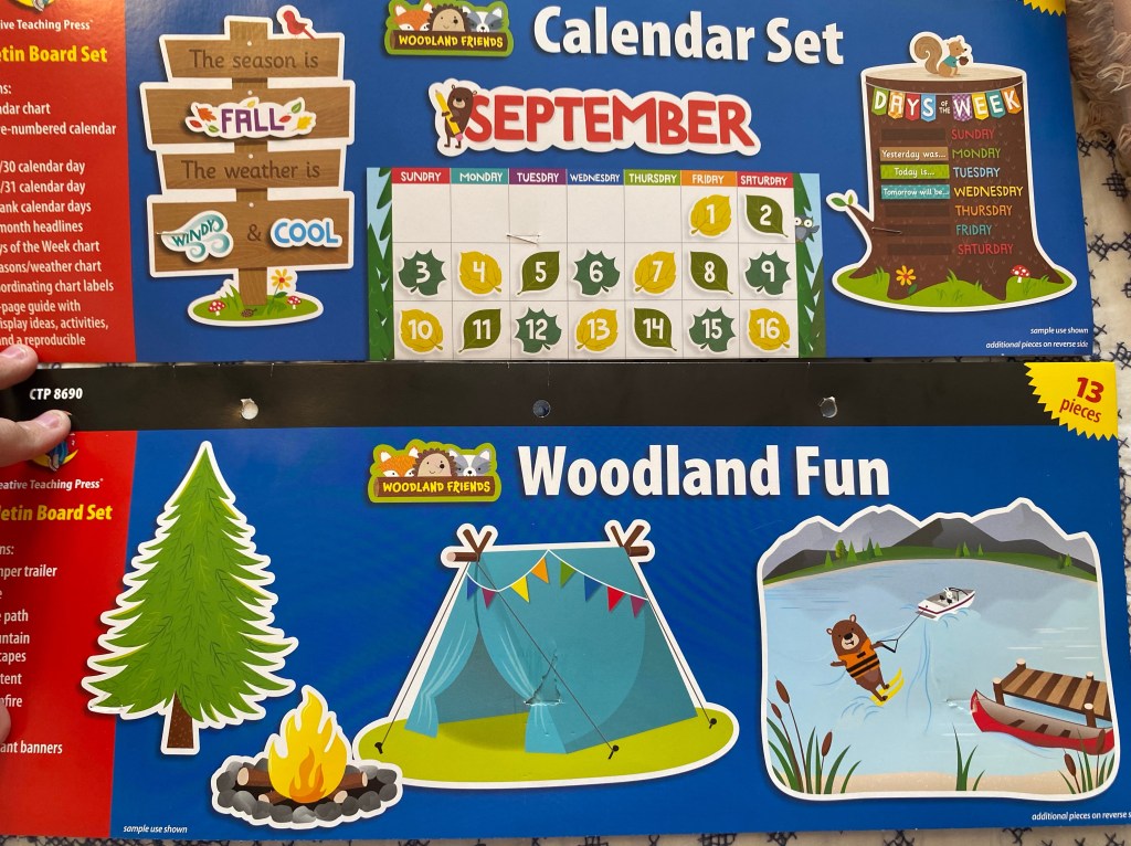 So for the learning wall/ calendar circle time wall and it will change leaves with the seasons. Kind of like what I had in mind at the beginning of last school year, but the flood happened and I changed my mind. However I love this collection.