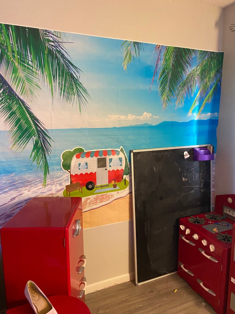 This wall will change background with the seasons and the camper plus the other items I’m waiting for will change with it.